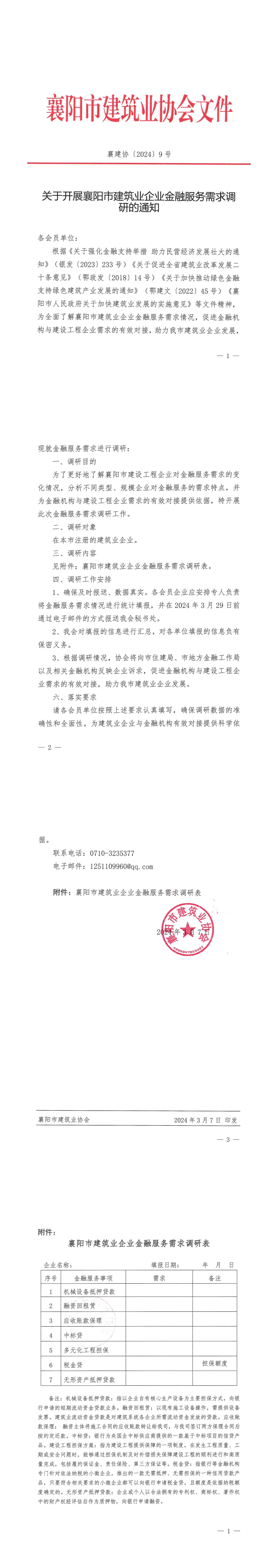 見附件:襄陽市建筑業企業金融服務需求調研表。