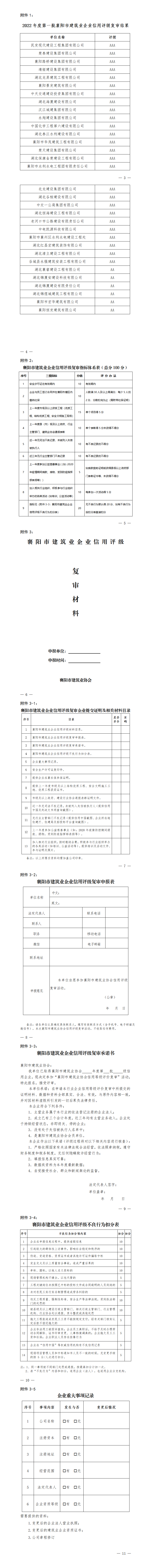 附件1:2022年度第一批襄陽市建筑業企業信用評級復審結果