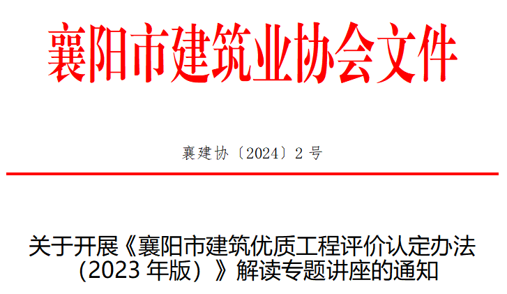 關于印發《襄陽市建設工程“隆中杯”獎(市優質工程)評審辦法》的通知