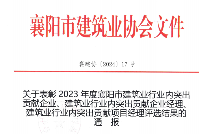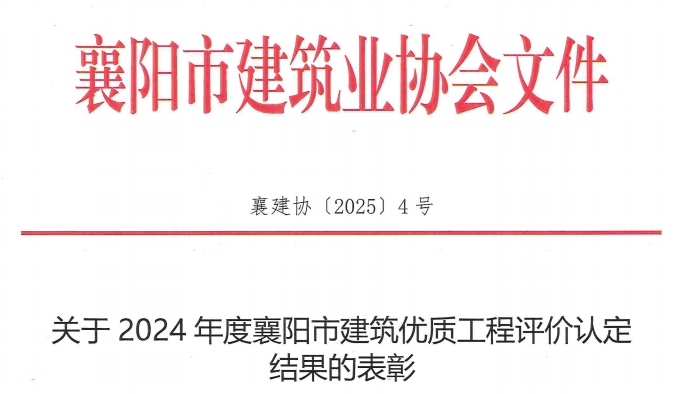 關(guān)于表彰2019年度襄陽市建設(shè)工程“隆中杯”獎(市結(jié)構(gòu)優(yōu)質(zhì)工程)的通報(bào)