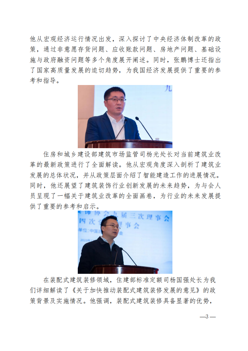 12月22日下午2點,中國建筑裝飾協會九屆三次理事會及九屆四次常務理事會如期舉行。協會會長王中奇在會議中進行了工作報告,全面總結了2023年的工作情況,并對2024年的工作進行了規劃和部署。報告中強調,要以習近平新時代中國特色社會主義思想為指導,全面貫徹落實黨的二十大和二十屆二中全會精神,堅持穩中求進的工作總基調,貫徹新發展理念,推動行業實現“工業化、數字化、綠色化、裝配化”的轉型升級,積極推動行業科技進步,提高裝飾裝修品質,構建新型標準體系。同時,王中奇會長還激勵行業企業在當前的發展環境下,要有足夠的定力和耐心等待浪潮的到來;在上升期,則需要具備劈波斬浪的魄力和智慧。他指出,盡管行業發展仍面臨諸多困難和挑戰,但只有通過不斷努力和奮斗,才能克服艱難險阻,實現更加美好的未來。最后,王中奇會長強調,行業企業應主動服務黨和國家工作大局,以滿足人民日益增長的美好生活需要為出發點和落腳點,要深刻把握行業發展方向,增強發展韌性,為中國式現代化建設貢獻建筑裝飾行業力量,為實現中華民族偉大復興作出新的更大貢獻。