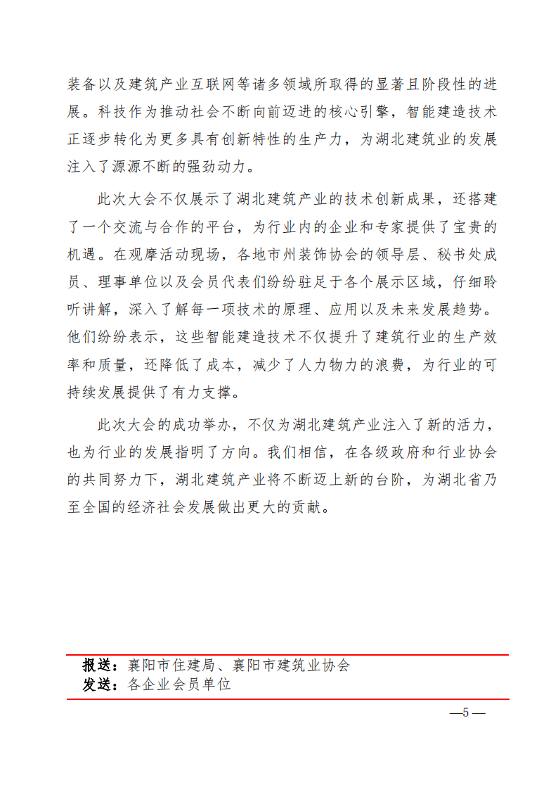 此次大會的成功舉辦,不僅為湖北建筑產業注入了新的活力,也為行業的發展指明了方向。我們相信,在各級政府和行業協會的共同努力下,湖北建筑產業將不斷邁上新的臺階,為湖北省乃至全國的經濟社會發展做出更大的貢獻。