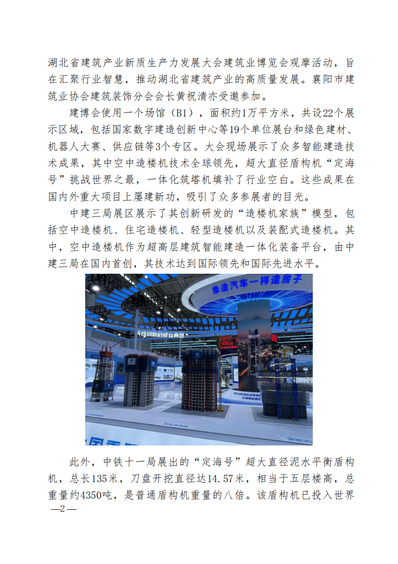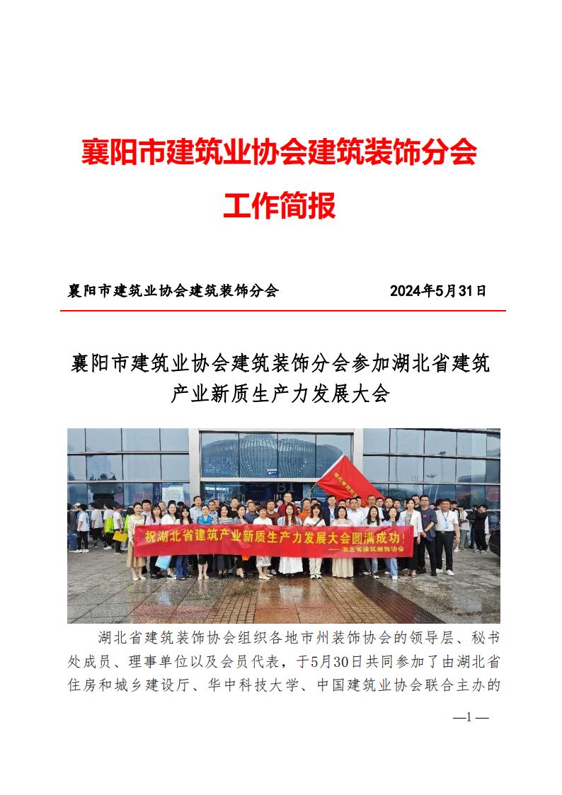 湖北省建筑裝飾協會組織各地市州裝飾協會的領導層、秘書處成員、理事單位以及會員代表,于5月30日共同參加了由湖北省住房和城鄉建設廳、華中科技大學、中國建筑業協會聯合主辦的湖北省建筑產業新質生產力發展大會建筑業博覽會觀摩活動,旨在匯聚行業智慧,推動湖北省建筑產業的高質量發展。襄陽市建筑業協會建筑裝飾分會會長黃祝清亦受邀參加。