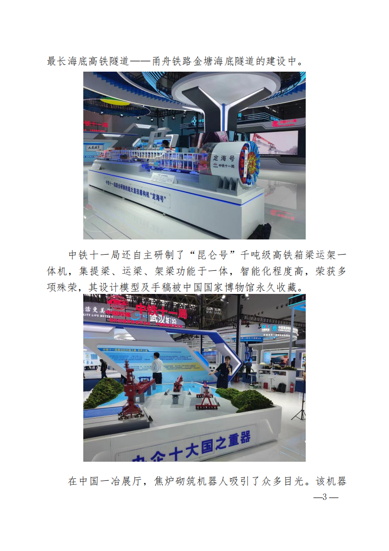 中建三局展區展示了其創新研發的“造樓機家族”模型,包括空中造樓機、住宅造樓機、輕型造樓機以及裝配式造樓機。其中,空中造樓機作為超高層建筑智能建造一體化裝備平臺,由中建三局在國內首創,其技術達到國際領先和國際先進水平。