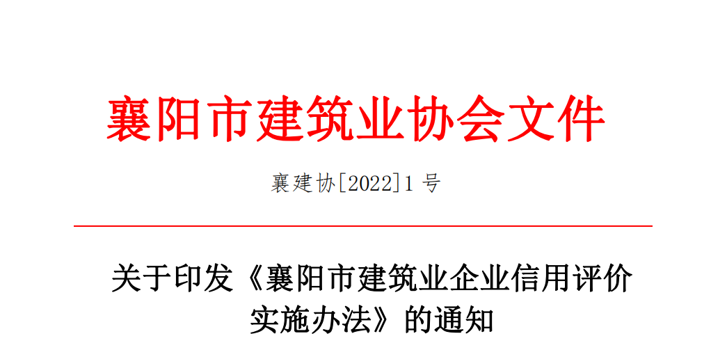 關于印發襄陽市建筑業企業信用評級的通知及信用評級管理辦法附件:關于印發襄陽市建筑業企業信用評級的通知... 【查看全文】